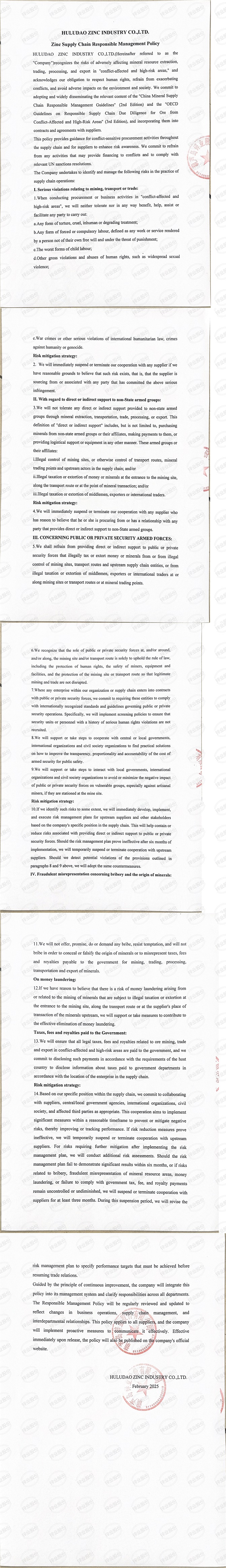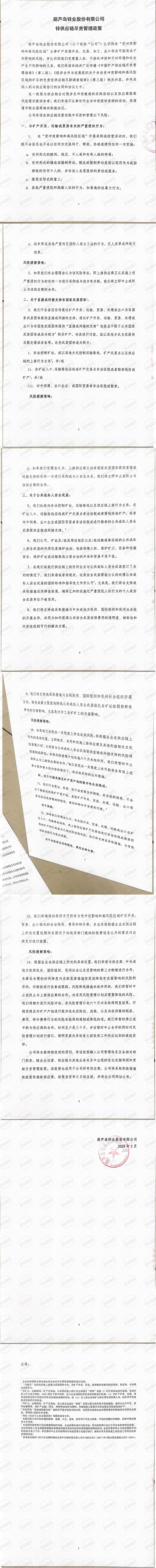 葫蘆島鋅業股份有限公司鋅供應鏈盡責管理政策(中英文)