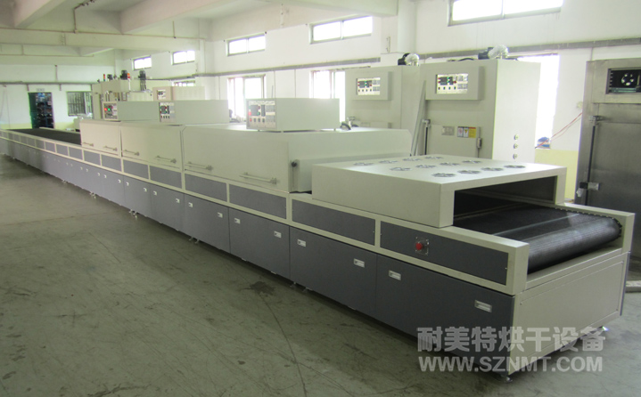 烘干爐部分外形尺寸:總長(zhǎng)18米,外寬1.34米,網(wǎng)帶寬1.1米,總高1.22米,進(jìn)料部分長(zhǎng)10米,烘干部分長(zhǎng)6米,緩沖區(qū)長(zhǎng)0.3米;